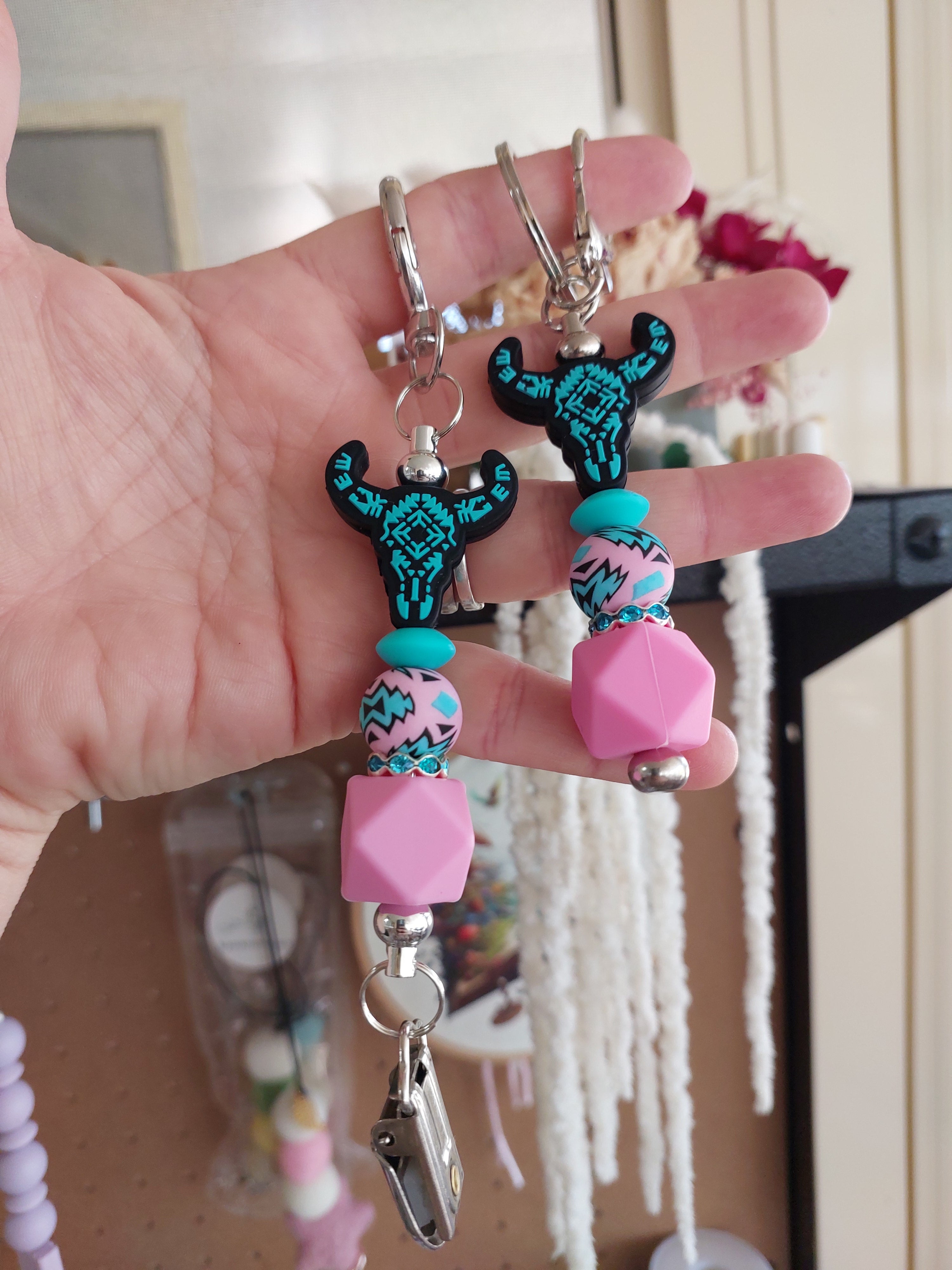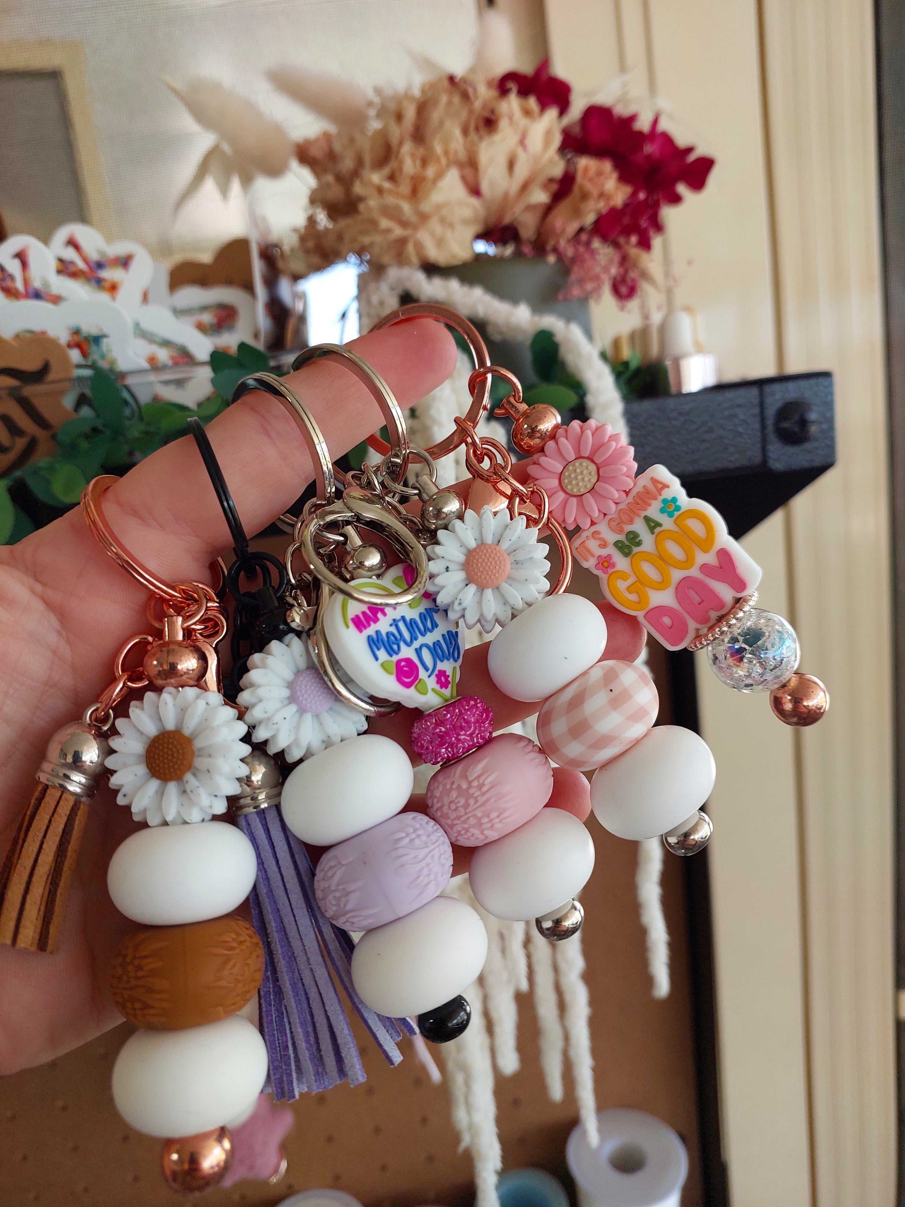 Silicone beaded keychain's, some are made on a solid bar some are...